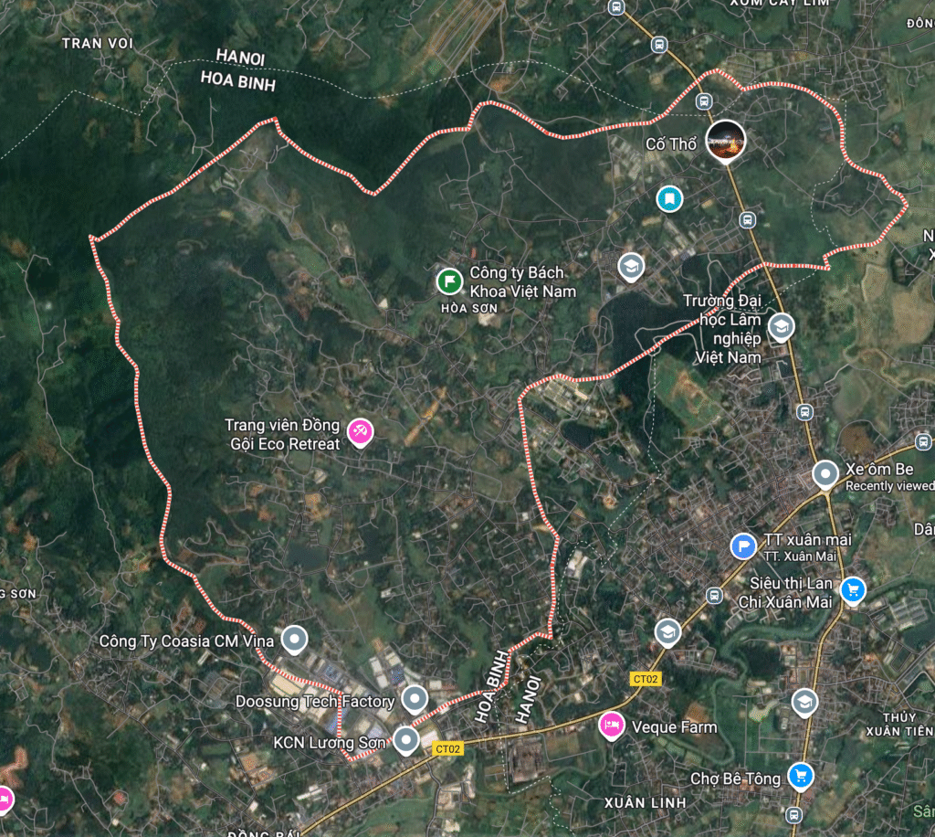 Hòa Sơn nằm ngay sát ranh giới hành chính Hà Nội – Hòa Bình, tiếp giáp khu vực Xuân Mai – một trong những đô thị vệ tinh được định hướng phát triển mạnh nhất theo quy hoạch vùng Thủ đô.