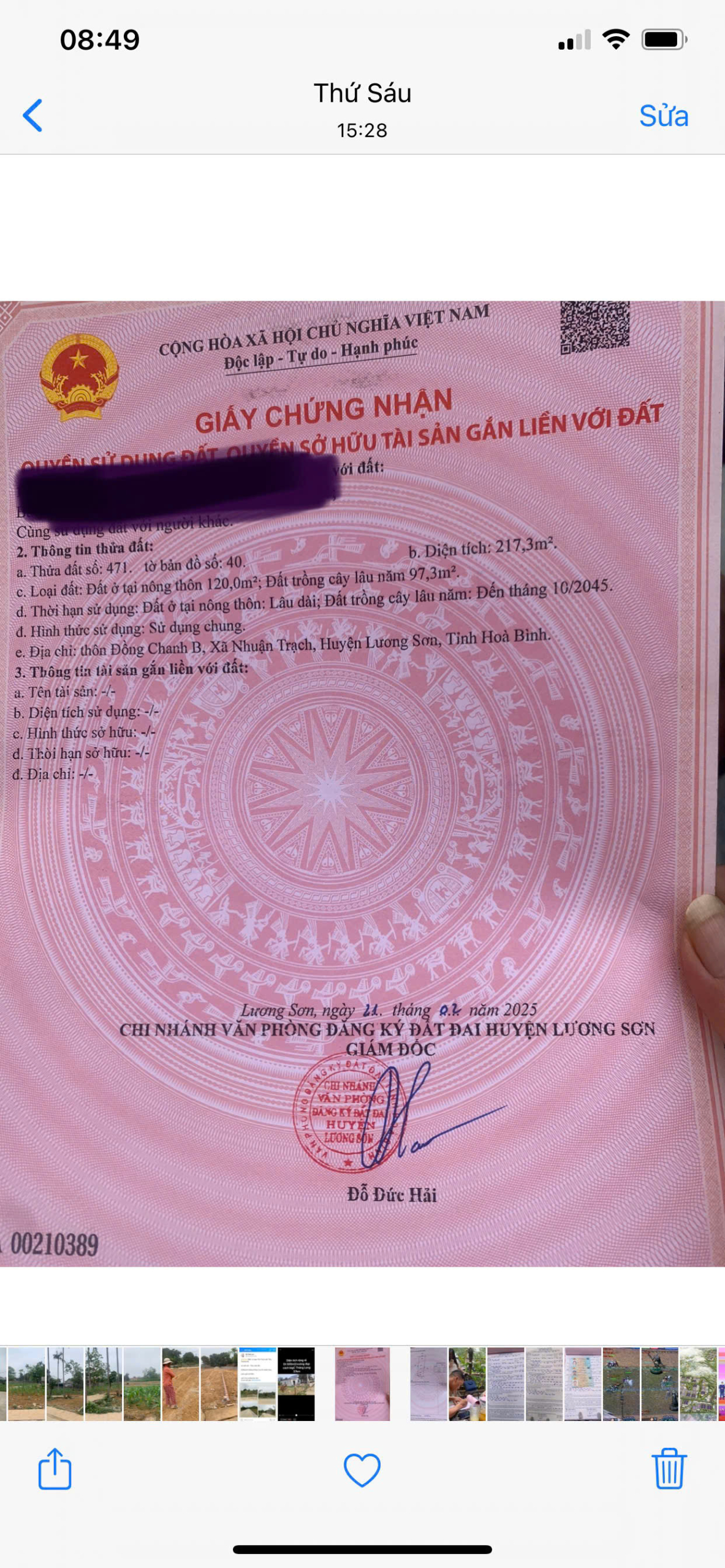 • Trong đó: 120 m² đất ở lâu dài, 97,3 m² đất trồng cây lâu năm.
